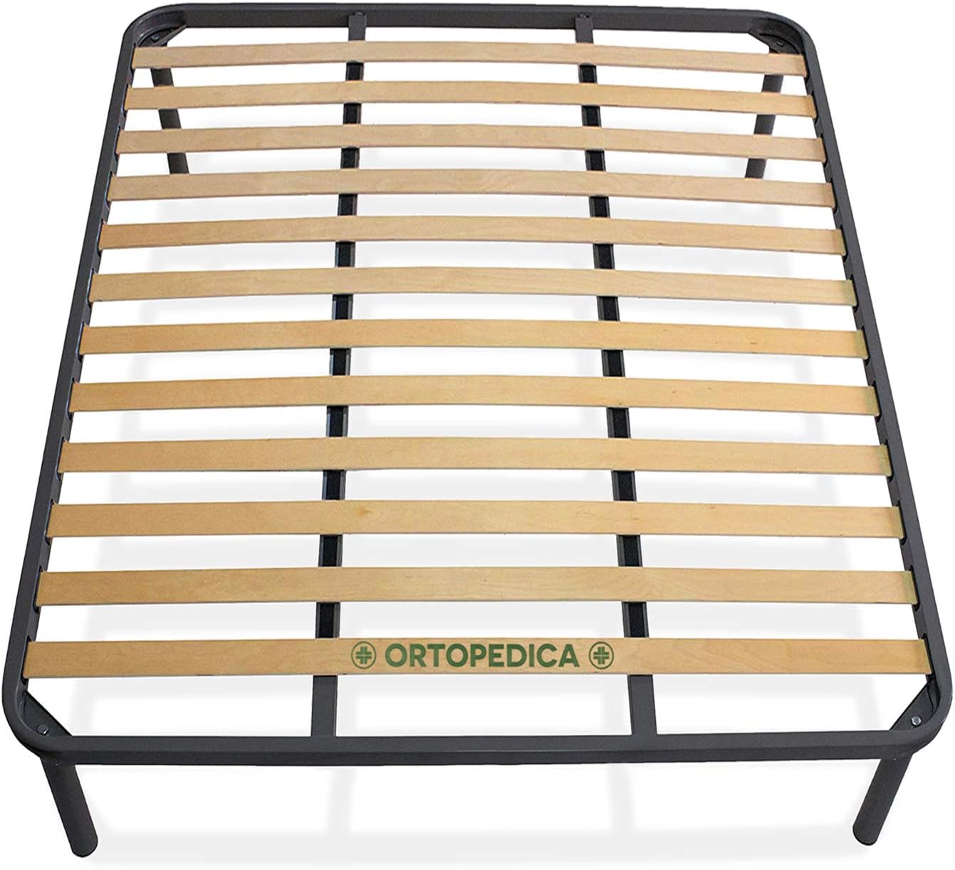 - Ortopedica , telaio ferro ,doghe in faggio. - 4 piedi in ferro con zocolino antiscivolo. - Stabile, equilibrata e forte. - 13 doghe in legno multistrato di faggio. - barre centrali su matrimoniali,